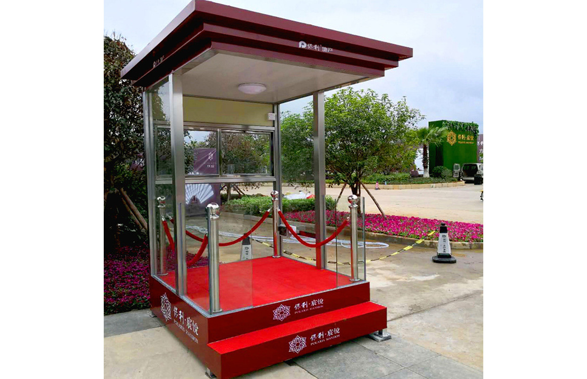 4、门窗部分:门为不锈钢密封门,窗采用推拉窗,玻璃常规采用5mm厚耐用玻璃;圆弧形岗亭玻璃则采用8mm厚弧形耐用玻璃,其他部位为5mm厚,用耐厚胶固定,并特用防水密封胶防水;